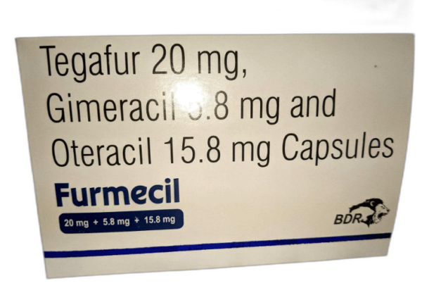 Furmecil 15mg Capsule is a combination chemotherapy medication containing the active constituents Tegafur, Gimeracil, Oteracil. The combination chemotherapy treatment known as S-1 is used to treat various types of cancer, including gastric, colorectal, breast, and pancreatic cancer. This capsule is not recommended for adolescents and children under 18 and may be given alone or in combination with other anticancer drugs.