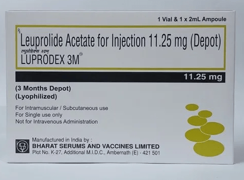 Luprodex 11.25mg Injection is used in the treatment of prostate cancer. It is also used to treat endometriosis (endometrium of the uterus grows excessively and causes symptoms like pain, heavy or irregular periods), uterine fibroids and central precocious puberty (very early puberty).