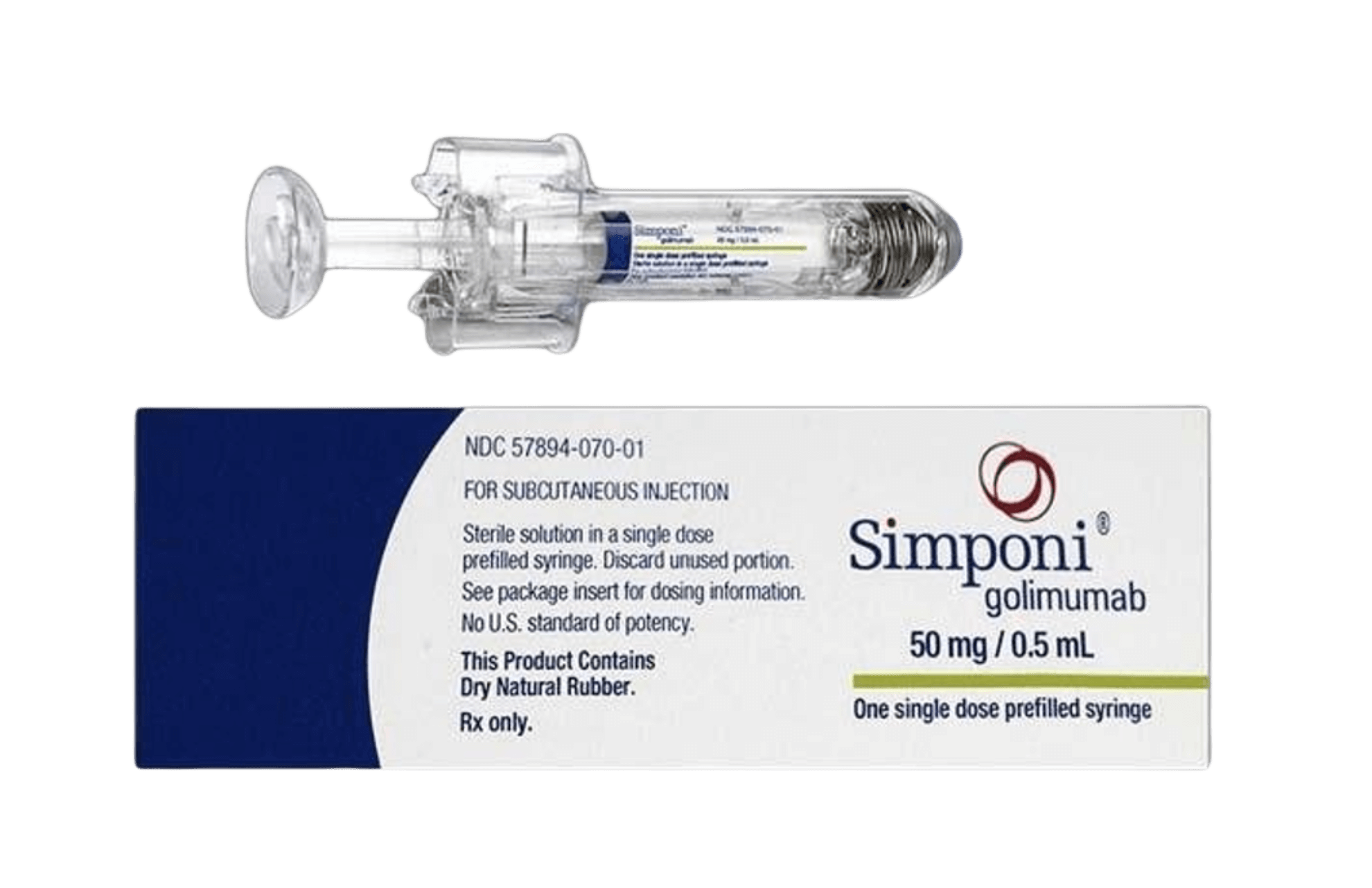 Simponi® (Golimumab) is a fully human anti-tumour necrosis factor alpha (anti-TNF-α) monoclonal antibody used to treat moderate to severe rheumatoid arthritis (RA), active psoriatic arthritis (PsA), active ankylosing spondylitis (AS), and non-radiographic axial spondyloarthritis (nr-axSpA). Simponi is unique among anti-TNF biologics in offering a once-monthly subcutaneous injection — the least frequent dosing schedule of any anti-TNF therapy — significantly improving patient convenience and treatment adherence.